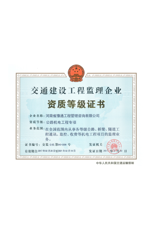 交通建設(shè)工程監(jiān)理企業(yè)公路機(jī)電工程專項(xiàng)證書 -