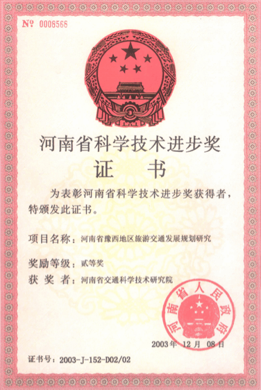 2003年河南省科技進(jìn)步獎(jiǎng) -
